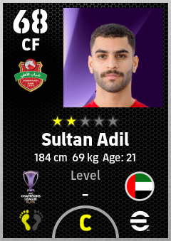 . Sultan Adil is a Center Forward footballer from United Arab Emirates who plays for Shabab Al Ahli Dubai Fc in eFootball 2026.