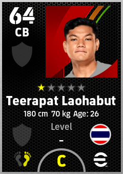 . Teerapat Laohabut is a Center Back footballer from Thailand who plays for Free in eFootball 2026.