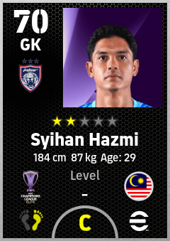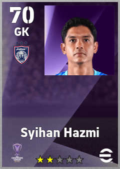 . Syihan Hazmi is a Goalkeeper footballer from Malaysia who plays for Johor Darul Ta'zim Fc in eFootball 2026.