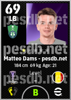 . Matteo Dams is a Left Back footballer from Belgium who plays for Al Ahli Saudi Fc in eFootball 2026.