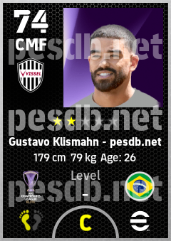 . Gustavo Klismahn is a Center Midfielder footballer from Brazil who plays for Vissel Kobe in eFootball 2026.