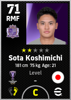 . Sota Koshimichi is a Right Midfielder footballer from Japan who plays for Sanfrecce Hiroshima in eFootball 2026.