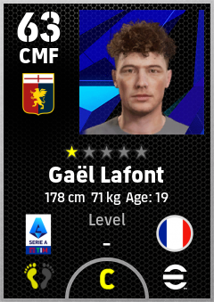 . Gaël Lafont is a Center Midfielder footballer from France who plays for Genova Rb in eFootball 2026.