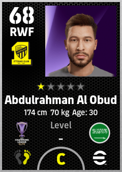 . Abdulrahman Al Obud is a Right Wing Forward footballer from Saudi Arabia who plays for Al Ittihad Club in eFootball 2026.