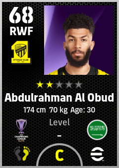 . Abdulrahman Al Obud is a Right Wing Forward footballer from Saudi Arabia who plays for Al Ittihad Club in eFootball 2026.