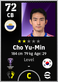 . Cho Yu-Min is a Center Back footballer from Korea Republic who plays for Sharjah Fc in eFootball 2026.