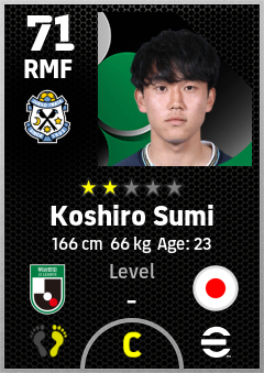 . Koshiro Sumi is a Right Midfielder footballer from Japan who plays for Jubilo Iwata in eFootball 2026.