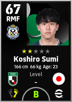 . Koshiro Sumi is a Right Midfielder footballer from Japan who plays for Jubilo Iwata in eFootball 2026.
