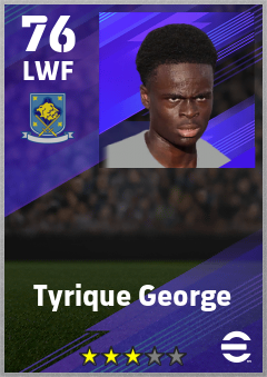 . Tyrique George is a Left Wing Forward footballer from England who plays for Chelsea B in eFootball 2026.