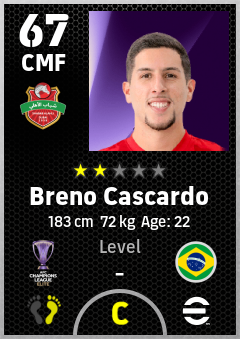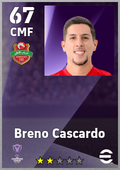 . Breno Cascardo is a Center Midfielder footballer from Brazil who plays for Shabab Al Ahli Dubai Fc in eFootball 2026.