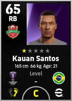 . Kauan Santos is a Right Back footballer from Brazil who plays for Shabab Al Ahli Dubai Fc in eFootball 2026.