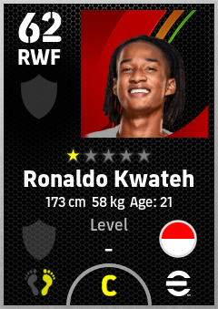 . Ronaldo Kwateh is a Right Wing Forward footballer from Indonesia who plays for Free in eFootball 2026.