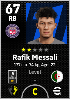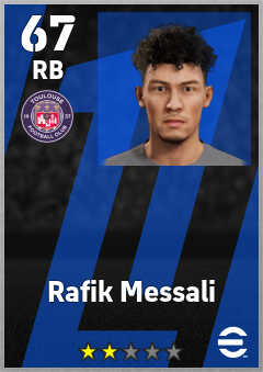 . Rafik Messali is a Right Back footballer from Algeria who plays for Toulouse Fc in eFootball 2026.