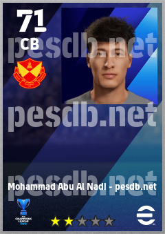 . Mohammad Abu Al Nadi is a Center Back footballer from Jordan who plays for Selangor Fc in eFootball 2026.
