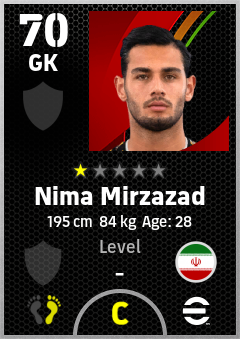 . Nima Mirzazad is a Goalkeeper footballer from Ir Iran who plays for Free in eFootball 2026.