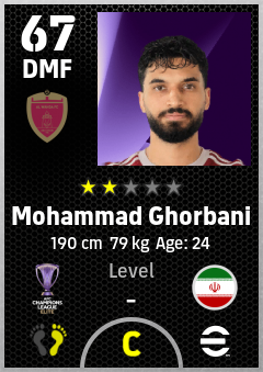 . Mohammad Ghorbani is a Defensive Midfielder footballer from Ir Iran who plays for Al Wahda Fc in eFootball 2026.