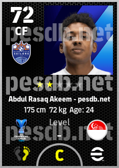 . Abdul Rasaq Akeem is a Center Forward footballer from Singapore who plays for Lion City Sailors Fc in eFootball 2026.
