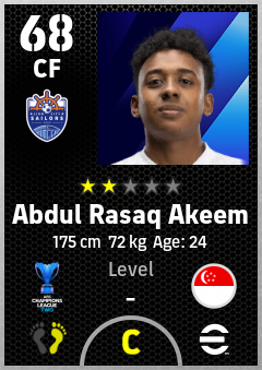 . Abdul Rasaq Akeem is a Center Forward footballer from Singapore who plays for Lion City Sailors Fc in eFootball 2026.