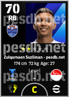 . Zulqarnaen Suzliman is a Right Back footballer from Singapore who plays for Lion City Sailors Fc in eFootball 2026.