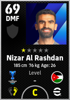 . Nizar Al Rashdan is a Defensive Midfielder footballer from Jordan who plays for Al Zawraa Sc in eFootball 2026.