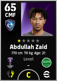 . Abdullah Zaid is a Center Midfielder footballer from Saudi Arabia who plays for Al Hilal Sfc in eFootball 2026.