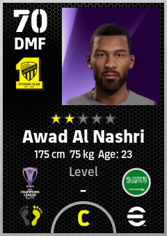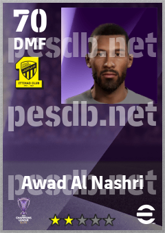 . Awad Al Nashri is a Defensive Midfielder footballer from Saudi Arabia who plays for Al Ittihad Club in eFootball 2026.