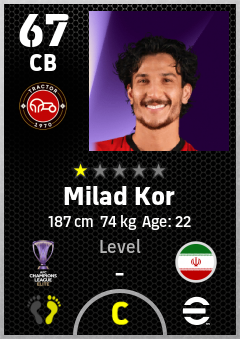. Milad Kor is a Center Back footballer from Ir Iran who plays for Tractor Fc in eFootball 2026.