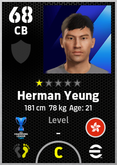 . Herman Yeung is a Center Back footballer from Hong Kong, China who plays for Tai Po Fc in eFootball 2026.