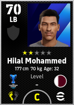 . Hilal Mohammed is a Left Back footballer from Qatar who plays for Al Ahli Sc in eFootball 2026.