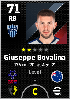 . Giuseppe Bovalina is a Right Back footballer from Australia who plays for Vancouver Bw in eFootball 2026.