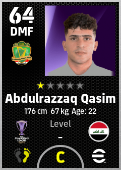 . Abdulrazzaq Qasim is a Defensive Midfielder footballer from Iraq who plays for Al Shorta Sc in eFootball 2026.