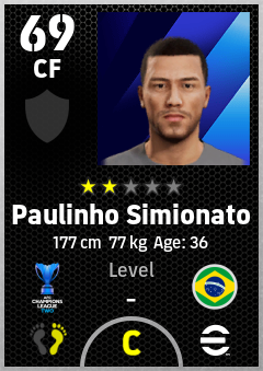 . Paulinho Simionato is a Center Forward footballer from Brazil who plays for Tai Po Fc in eFootball 2026.