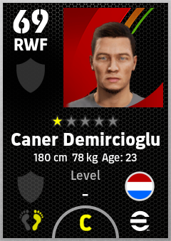 . Caner Demircioglu is a Right Wing Forward footballer from Netherlands who plays for Free in eFootball 2026.