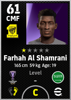 . Farhah Al Shamrani is a Center Midfielder footballer from Saudi Arabia who plays for Al Ittihad Club in eFootball 2026.