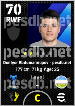 . Doniyor Abdumannopov is a Right Wing Forward footballer from Uzbekistan who plays for Fc Andijan in eFootball 2026.