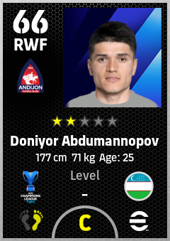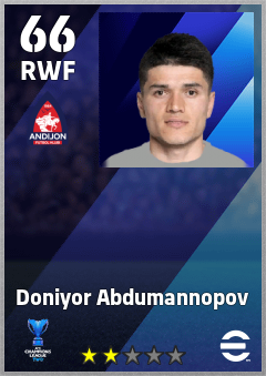 . Doniyor Abdumannopov is a Right Wing Forward footballer from Uzbekistan who plays for Fc Andijan in eFootball 2026.