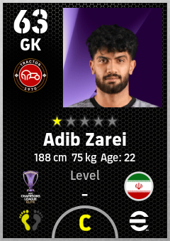 . Adib Zarei is a Goalkeeper footballer from Ir Iran who plays for Tractor Fc in eFootball 2026.