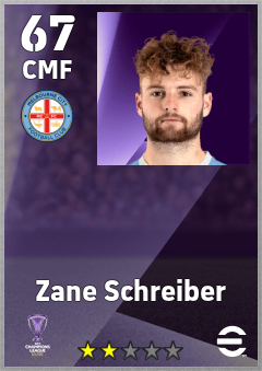 . Zane Schreiber is a Center Midfielder footballer from Australia who plays for Melbourne City Fc in eFootball 2026.