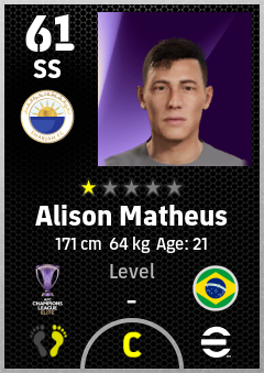. Alison Matheus is a Second Striker footballer from Brazil who plays for Sharjah Fc in eFootball 2026.