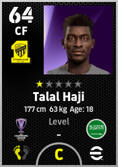 . Talal Haji is a Center Forward footballer from Saudi Arabia who plays for Al Ittihad Club in eFootball 2026.