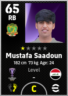 . Mustafa Saadoun is a Right Back footballer from Iraq who plays for Al Shorta Sc in eFootball 2026.