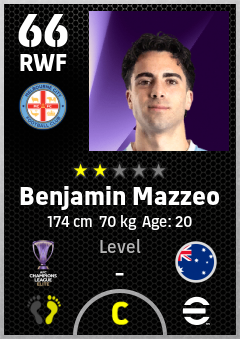 . Benjamin Mazzeo is a Right Wing Forward footballer from Australia who plays for Melbourne City Fc in eFootball 2026.