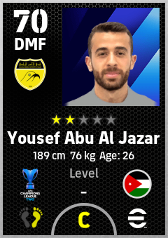 . Yousef Abu Al Jazar is a Defensive Midfielder footballer from Jordan who plays for Al Hussein Sc in eFootball 2026.