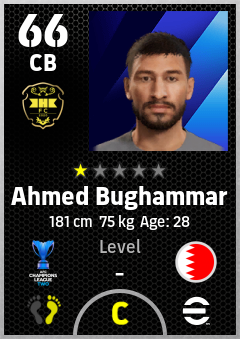. Ahmed Bughammar is a Center Back footballer from Bahrain who plays for Al Khaldiya Sc in eFootball 2026.