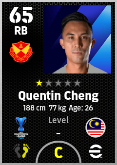 . Quentin Cheng is a Right Back footballer from Malaysia who plays for Selangor Fc in eFootball 2026.