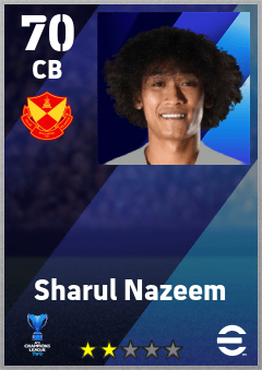 . Sharul Nazeem is a Center Back footballer from Malaysia who plays for Selangor Fc in eFootball 2026.