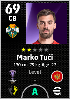 . Marko Tući is a Center Back footballer from Montenegro who plays for Gangwon Fc in eFootball 2026.