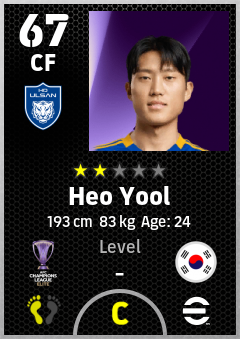 . Heo Yool is a Center Forward footballer from Korea Republic who plays for Ulsan Hd Fc in eFootball 2026.