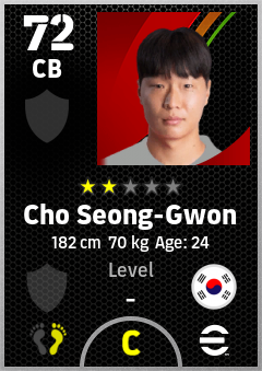 . Cho Seong-Gwon is a Center Back footballer from Korea Republic who plays for Free in eFootball 2026.
