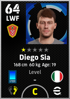 . Diego Sia is a Left Wing Forward footballer from Italy who plays for Miranda De Ebro Rn in eFootball 2026.